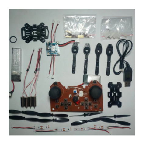 Adolescente estudiantes entrenamiento avión modelo entrenamiento control remoto avión DIY montado quadcopter
